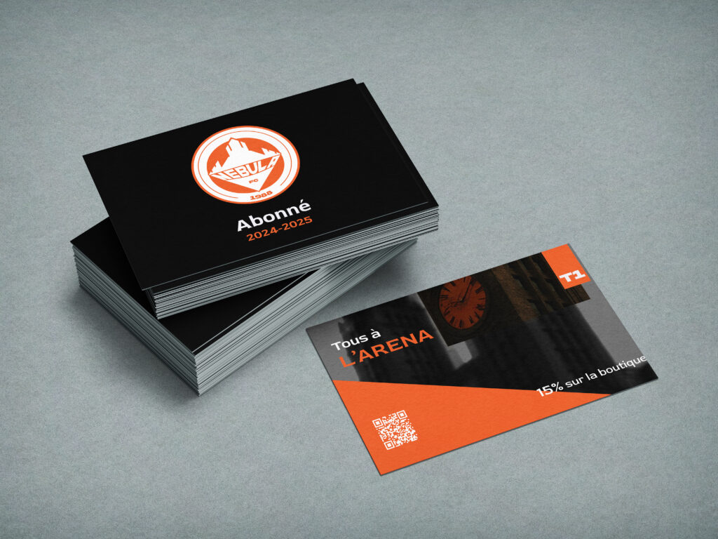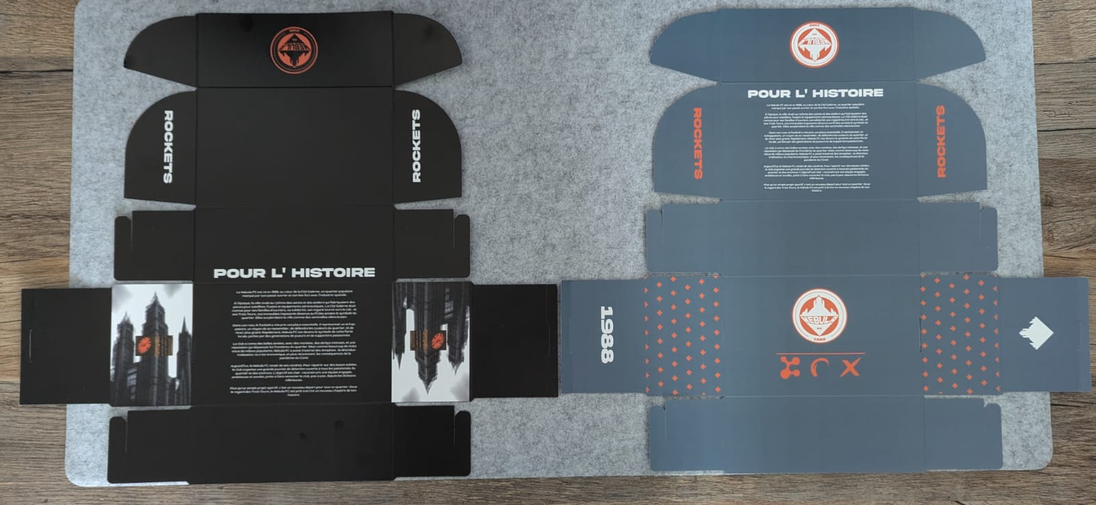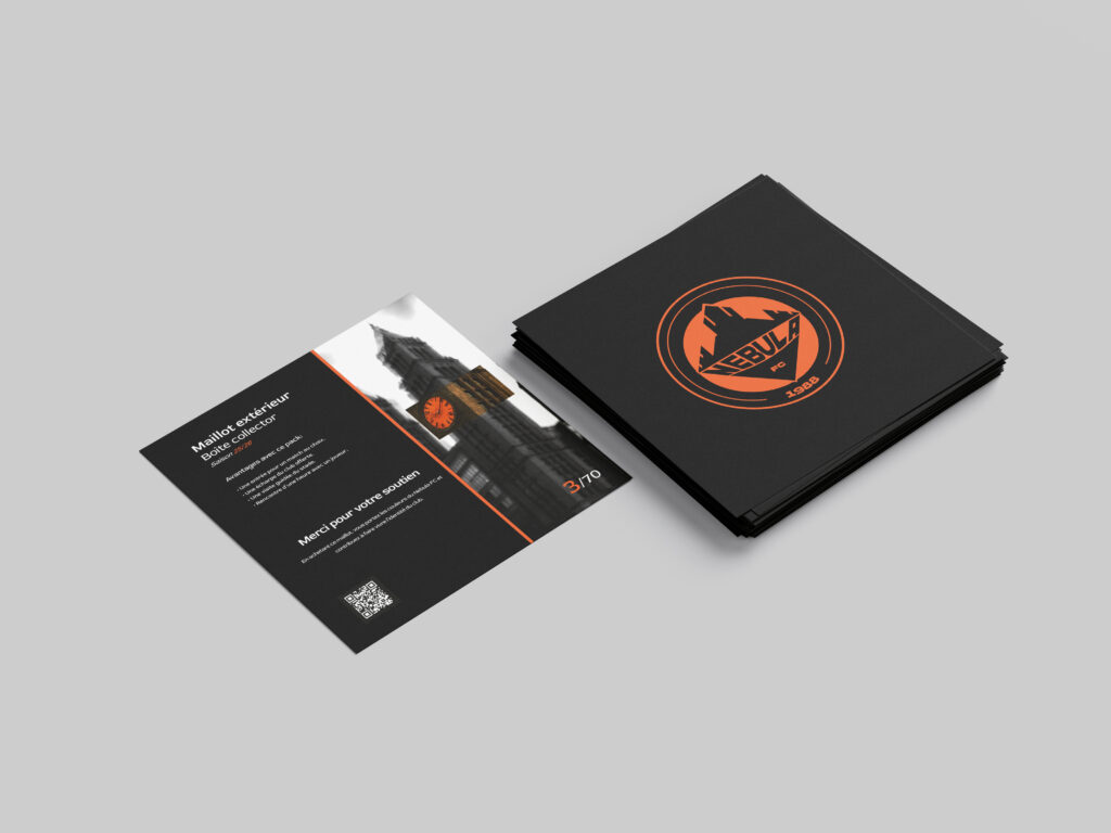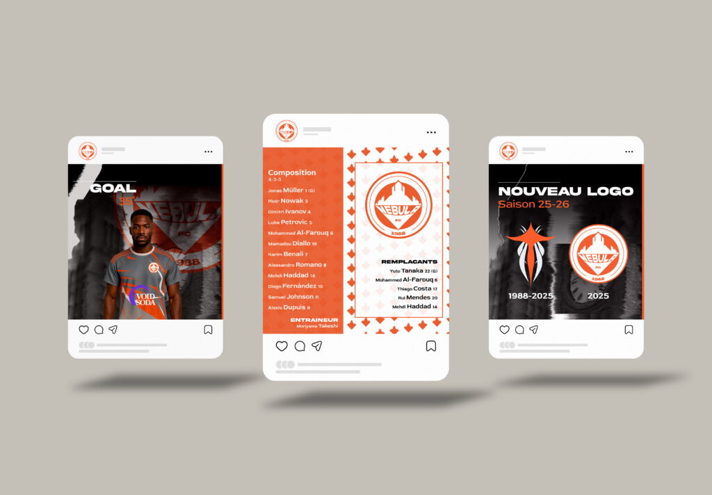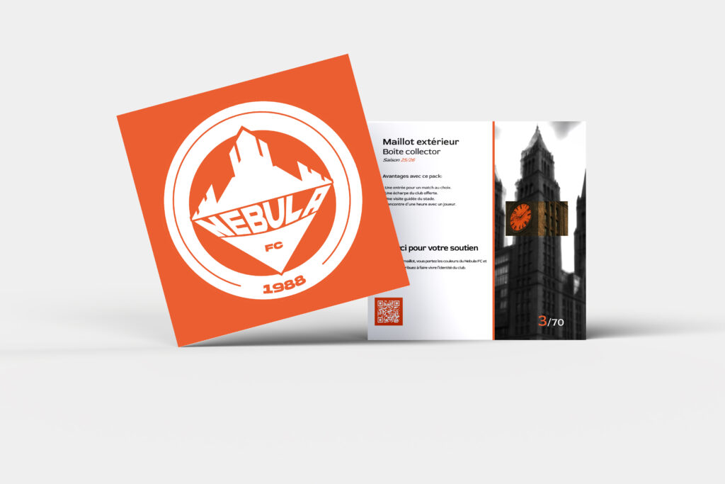 Création de supports de communication variés incluant un dépliant pour la journée de détection, une carte d’abonnement, des flyers promotionnels, des tickets d’entrée pour les matchs, une étiquette avec les instructions de lavage, ainsi que des visuels adaptés aux réseaux sociaux. Ce travail s’étend également à la conception du packaging destiné à la boîte du maillot du club.